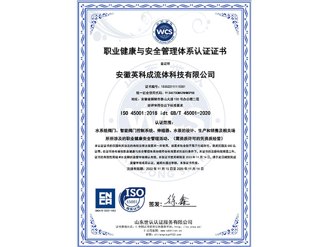 • 職業(yè)健康安全管理體系認(rèn)證證書